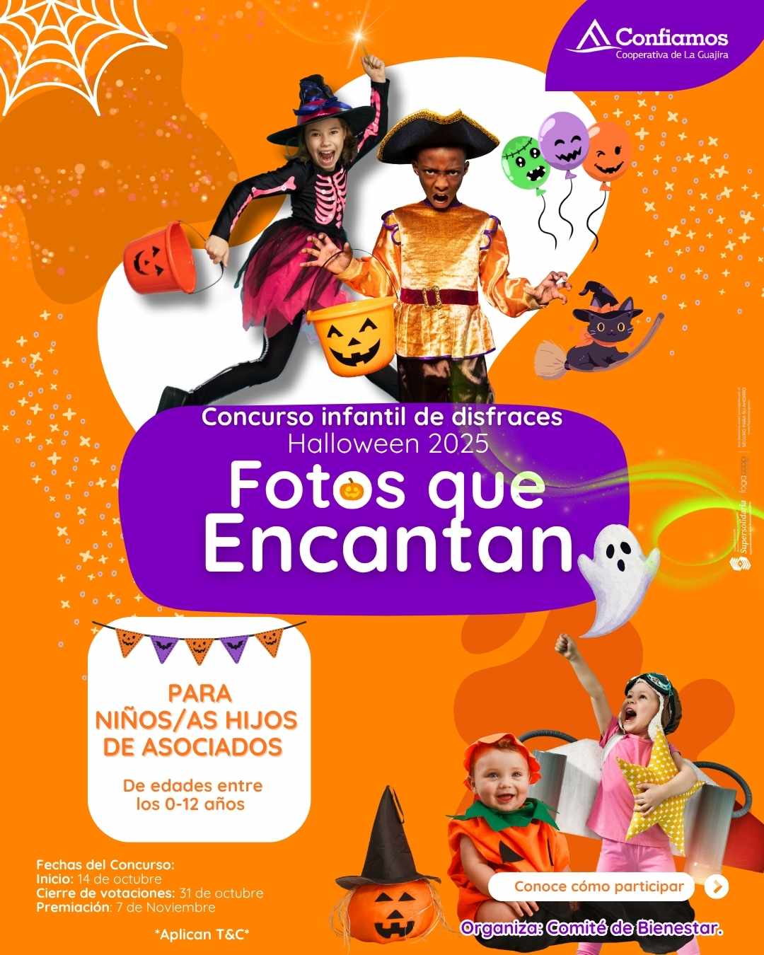 Invitamos a participar a todos los niños y niñas hijos de asociados, entre 0 y 12 años, en nuestro divertido Concurso Infantil de Disfraces. 🎉